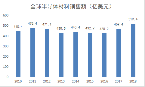 SEMI數(shù)據(jù)顯示,2018年全球半導(dǎo)體材料市場銷售額約519.4億美元,其中制造材料銷售額約322億美元,封裝材料銷售額約197億美元。在整個電子信息產(chǎn)業(yè)中,半導(dǎo)體材料的產(chǎn)值雖不能算極高,但卻具有極大的附加值和特有的產(chǎn)業(yè)生態(tài)支撐作用,半導(dǎo)體材料的自主可控關(guān)乎整個電子信息產(chǎn)業(yè)生態(tài)安全。