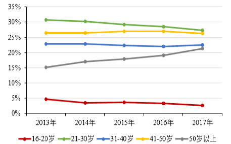 農(nóng)民工是我國城鎮(zhèn)化進程中的勞動力主力軍,然而近年來,農(nóng)民工群體也呈現(xiàn)出逐步老齡化的特征,農(nóng)民工平均年齡不斷提高,50歲以上農(nóng)民工所占比重提高較快。2017年農(nóng)民工平均年齡為39.7歲,比16年提高0.7歲。從年齡結(jié)構(gòu)看,30歲以下的年青一代農(nóng)民工所占比重為29.9%,比16年下降2.0個百分點;40歲及以下農(nóng)民工所占比重為52.4%,比16年下降1.5個百分點;50歲以上農(nóng)民工所占比重為21.3%,比16年提高2.2個百分點,自2014年以來比重提高呈加快態(tài)勢。農(nóng)民工老齡化逐年加劇,直接影響了社會勞動力的供給,機器替代人工成為解決這一問題最為有效的方式,也是我國制造業(yè)轉(zhuǎn)型升級的必經(jīng)之路。