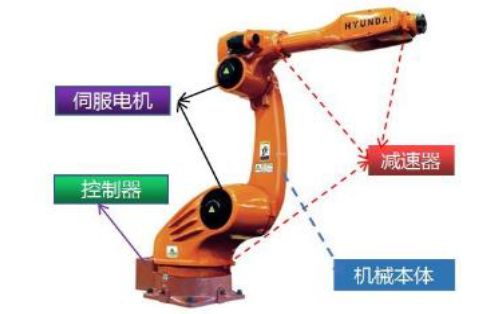 工業(yè)機器人核心零部件包括減速器、控制器和伺服系統(tǒng)等。減速器是機械傳動的核心,機器人的速度、精度都與減速器有關(guān),工業(yè)機器人使用的減速器主要是諧波減速器和RV減速器。