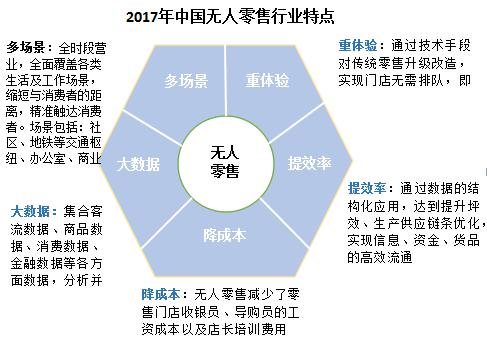 當(dāng)前中國無人零售行業(yè)主要呈現(xiàn)五大特點(diǎn):以降低人工成本作為無人零售的主要切入點(diǎn),在重視消費(fèi)體驗(yàn),拓展零售場景的同時(shí)通過多種技術(shù)手段實(shí)現(xiàn)大數(shù)據(jù)的收集、分析與應(yīng)用,并最終實(shí)現(xiàn)消費(fèi)流程的全面數(shù)據(jù)化以及整個(gè)產(chǎn)業(yè)鏈的智能化升級(jí)提效。
