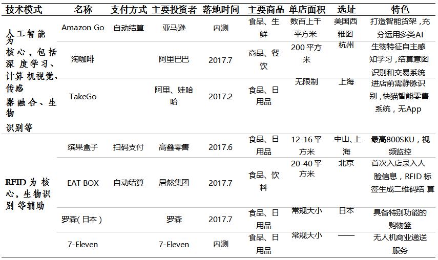 ? 無人店類似于小超市或者便利店,主要是2016年12月之后開始迅速爆發(fā),雖然之前也有企業(yè)開始耕耘無人零售,但市場的火熱以國外的Amazon Go 和國內(nèi)的淘咖啡為起點(diǎn)和引爆點(diǎn),巨頭的行動(dòng)帶動(dòng)了整體市場的快速推進(jìn)。