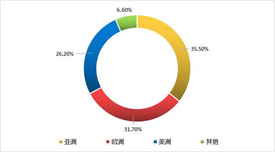 調(diào)查顯示,2016年前三季度全球α-亞麻酸行業(yè)需求市場占比如下:其中亞洲占比最高達(dá)到35.5%,其次是歐洲31.7%,美洲26.2%。