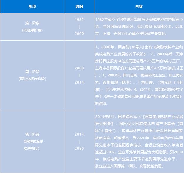 第一階段(1990年代末到2000年),希望建立強(qiáng)大的本土集成電路制造產(chǎn)業(yè),但并未成功;