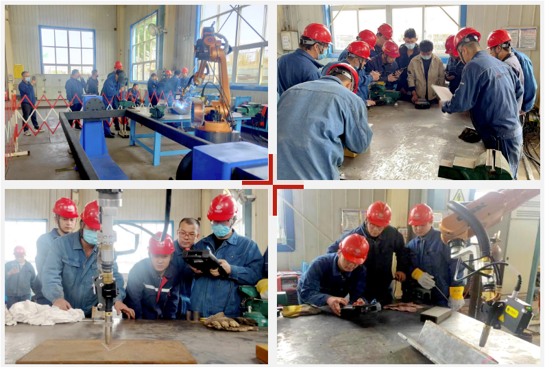 針對(duì)焊接機(jī)器人的具體操作,信息科技公司派遣專業(yè)技術(shù)人員前往現(xiàn)場(chǎng)開展了詳細(xì)的講解和演示。技術(shù)人員對(duì)GR-C操作系統(tǒng)、各類參數(shù)基本設(shè)置、程序編輯示例、程序管理與指令編輯、輸入輸出及PLC功能、程序加載及功能檢測(cè)、焊接編程應(yīng)用及安全操作等事項(xiàng)進(jìn)行了一一說明,切實(shí)提高了操作人員對(duì)不同應(yīng)用場(chǎng)景下各種編程及操作的掌握程度,同時(shí)有力保障了操作人員對(duì)整體智能焊接系統(tǒng)的操作安全,為后期焊接機(jī)器人在實(shí)際工作中的靈活應(yīng)用打下堅(jiān)實(shí)基礎(chǔ)。