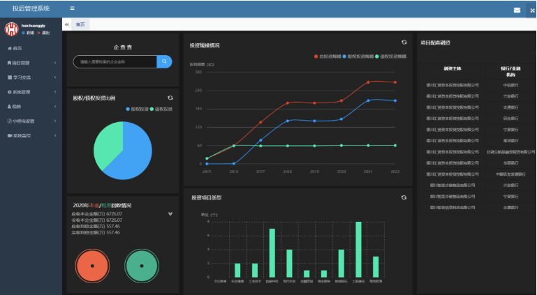 投后管理軟件系統(tǒng)能夠?qū)崟r(shí)統(tǒng)計(jì)項(xiàng)目數(shù)據(jù)及投后管理數(shù)據(jù),并通過可視化報(bào)表對各項(xiàng)情況進(jìn)行展示,直觀反應(yīng)投后管理效率及回款情況等??梢暬治鰣?bào)表能夠清晰呈現(xiàn)數(shù)據(jù)走向及了解背后的價(jià)值,幫助企業(yè)管理者迅速的了解各分支數(shù)據(jù),進(jìn)行不同方向調(diào)整,提高其工作效率。